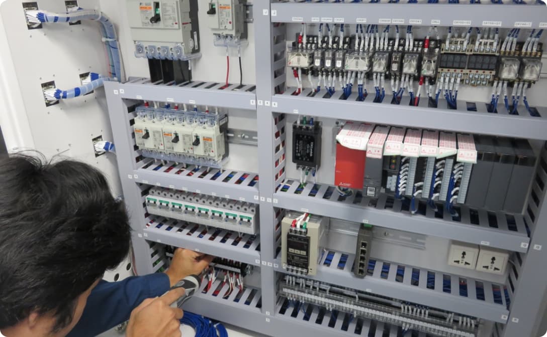主に自動車や半導体の生産に関わる自動制御装置、自動機の設計・製作・施工を行っております。