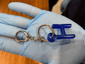 当日は、これまで取り組んできた2D作図から3Dモデリングの復習、3Dプリンターで作成した造形物の仕上げ作業に挑戦しました。お湯の中でサポート材を丁寧に取り除き、磨き上げる工程を体験しました。